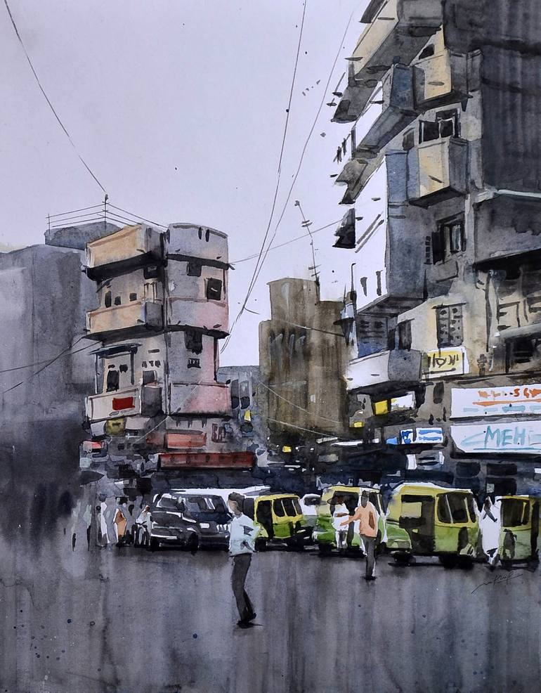 street scene in Ahmedabad , Gujarat Watercolor by mithil thaker