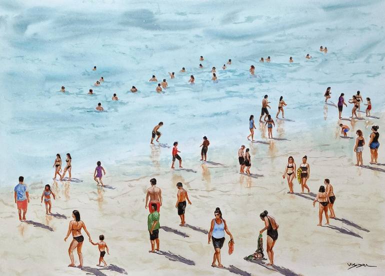 summer beach oil on canvas painting ready to hang sides painted