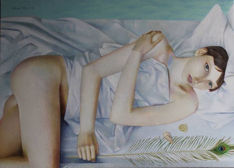 I like to paint white fabric involving the human body , especially female ...and I explore various combinations of that . I am not an original one in that ...if you look through the history of painting , you'll find this subject everywhere ....There should be a reason for that ...