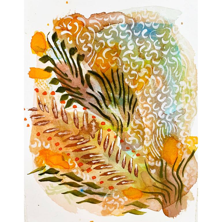 I grew up in rural America isolated from other homes and people. My parents worked long hours and my sister frequently stayed with friends. We had no television or record player and no periodicals came to our home. Therefore, I was often alone on a hundred acres of farmland, forests, and mountains with my horse, some sheep, a pond, wildlife, and my imagination. I was so unaccustomed to being with people that I was mute until about age 11. I expressed my feelings and thoughts with my artwork. I use many different materials in my work from the sticks and stones I played with as a child to paint and collage. I love to change mediums just to see what new things will happen. I like to experiment with color and texture, and I’m always curious about what the materials will do when gently pressured by my hands. I seldom have a plan for my work. Sometimes I have a vision, but I’m easy about going with what the materials do as my vision is taking shape. I like mistakes and odd combinations. My art is influenced by the patterns and madness of nature, the forest, and mountains, by the weather, the moon, the smells of animals, and their entertaining personalities.