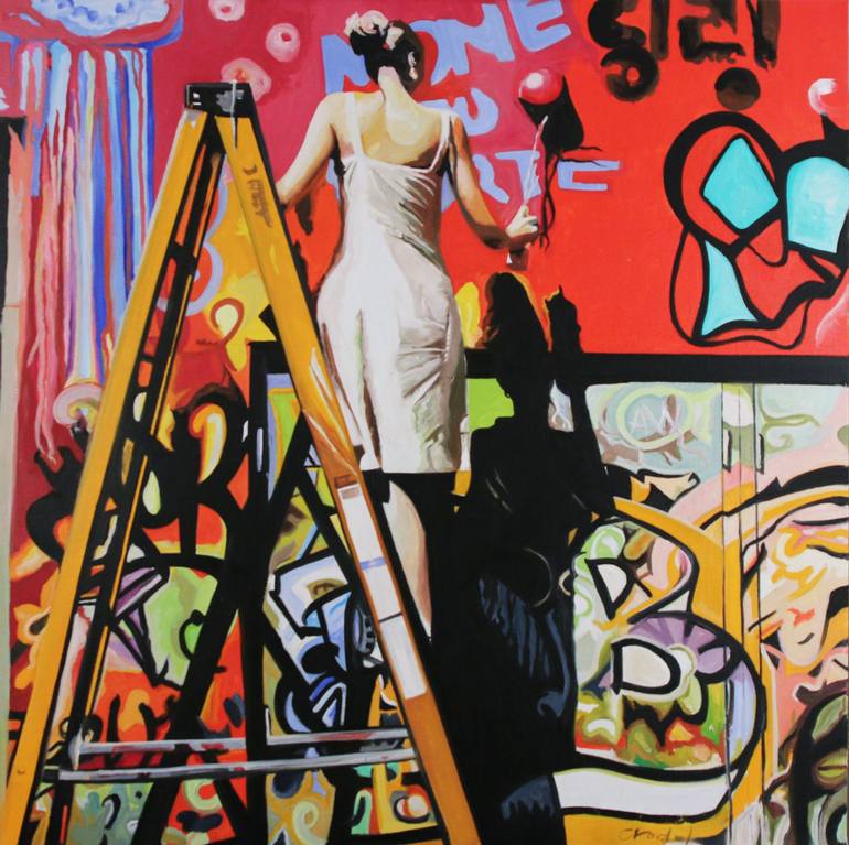 j agis à la manière d’un peintre-reporter traduisant un quotidien sublimé par la couleur et ébloui de lumière : scène de rue, Paris, New York, Japon… « Je suis une vraie citadine, il faut qu’il y ait du monde dans mes tableaux, que ça bouge ! Je suis aussi une marcheuse ; j’aime contempler ce qui passe à ma hauteur ». Issue de l’école d art graphique de la rue d’Ulm à Paris, elle crée son atelier d’illustration dans les années 1980 C’est donc après 25 ans de carrière comme illustratrice pour la publicité et l’édition que je me consacre essentiellement à la peinture De ce métier j'ai conservé une touche précise et réaliste. Mais cet aspect concret, presque photographique, tant dans la facture que dans les cadrages, est au service d’une rêverie sensible et d’une réelle poésie. « Mon imaginaire fonctionne sur les lieux traversés, les images que je croise, telles que les dessins manga. A partir de cela je recompose ma propre réalité. J’aime fabriquer des situations mêlant la tradition séculaire de certaines cultures, comme celle du Japon, et la réalité du monde contemporain. Je pars d’images, de souvenirs, de photographies ou de sensations vécues qui sont autant de propositions pour réinventer mon monde ». oeuvres de natures, paysages, marines, a la feuille d'or