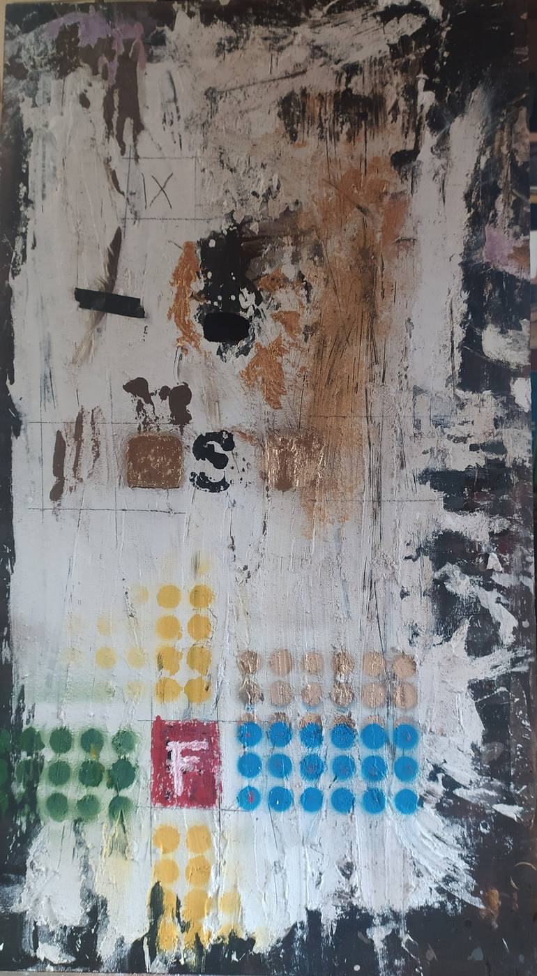 L’opera fa parte della serie “Divinazioni” e rappresenta una mappa mentale ad uso dell’interpretatore. L’evento scatenante è un’esperienza scioccante rimossa dal ricordo dello sperimentatore che però che ha come risultante il condizionare, come un accento, ogni singola esperienza futura come un acce...