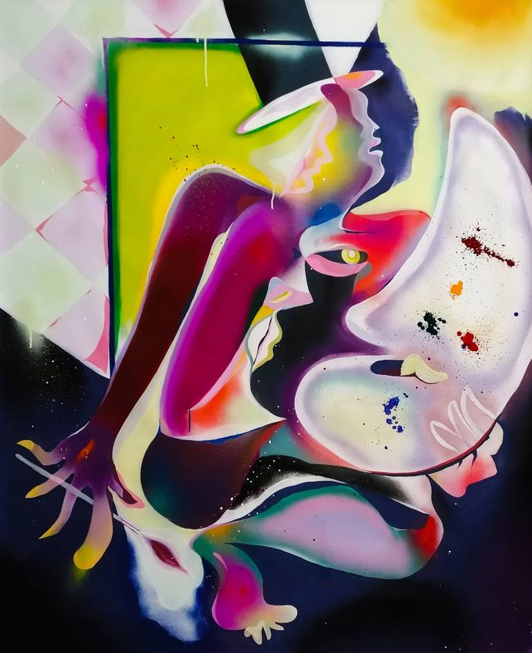 Marius Seidlitz, born 1985 in Erfurt / Germany, addresses the complexity of the demands on the self in his colourful works. What is beauty? Is there perfection? How much does the unmistakable self be denied in order to find any recognition? Seidlitz's artistic work/painting is formally diverse: from his craftsmanship as an engraving master as well as by the precise approach to design and the free-creative use of spray technology. His expressive images often originate from diverse women's bodies, which are deliberately imperfectly depicted. The viewer sees colourful curves, multi-layered nudity in all the glaring contradictions – between attraction and repulsion. But always multidimensional, always dynamic and never too precise. Because beauty is in the eye of the beholder. Intricate bodies, hinted limbs and lips sink into color-intensive surfaces and dynamic lines. With acrylic paint and spray paint, Seidlitz puts the self and how it presents itself on the test bench. In his works there are no 1A noses and no retort breasts, but the versatility of the imperfect. Anyone who sees his images with the hearts feels the beauty of vulnerability and tornness – sees the simultaneity of different proportions and needs of a person. His bodies can only be naked, because the soul shows up when it is naked. Man is complex and simple at the same time, he is always in a process to become.