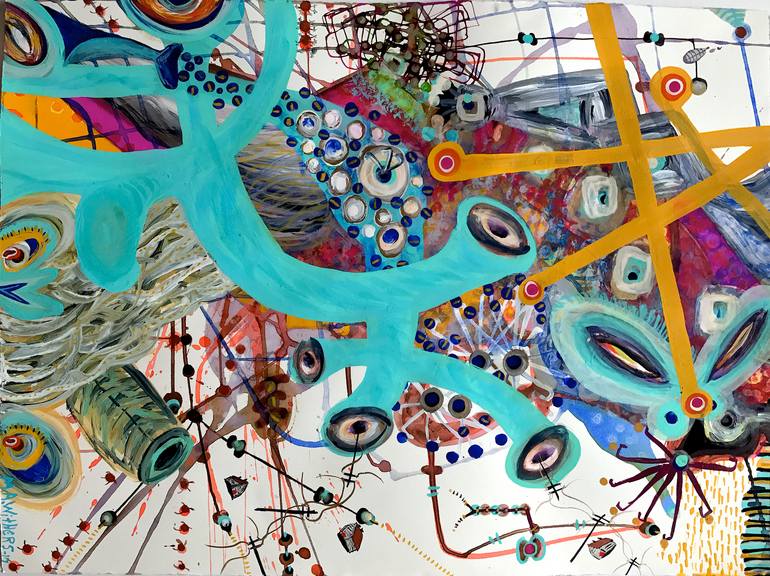 I will be at the upcoming The Other Art Fair Brooklyn in October - stop by and say Hi! I usually have some made-up story in my head that runs along with me as I paint. But this story will twist and turn and morph, so that when I'm done with the painting all that I'll have left are some blown apart bits. Narrative icons that are strewn within a curious abstract landscape. Overall, my paintings are playful and full of joy, with just a hint of melancholy - they are my reaction to the world around me. . . BIO I have shown my artwork in group and solo shows in New York City and nationwide, and internationally in Brussels, Australia, Berlin, China, Vienna and Russia. My art has been in past exhibits at The Drawing Center Museum in New York, Monmouth Museum in New Jersey, MarinMOCA in California and Attleboro Museum in Massachusetts. I've been awarded residency fellowships at the Millay Colony, MASS MoCA and Vermont Studio Center. My art and short stories been featured in multiple journals including the New England Review, Alexandria Quarterly and the Library as Incubator Project. My work is included in numerous private and corporate collections, including Truninger AG in Zurich, Switzerland and the Hammond Museum, North Salem, NY. I live and paint in the far northern reaches Manhattan, New York.