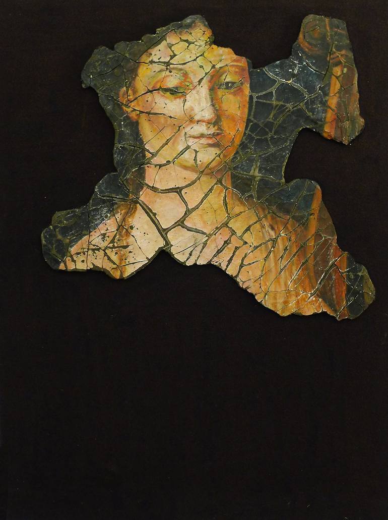 The painting is part of the "Frammenti" series, dedicated to the great history of the art of Italian painting and beyond, where I am going to rediscover and modify the original works in some small detail, presenting them as if they were detached frescoes and reproduced on particular, the muse polym...