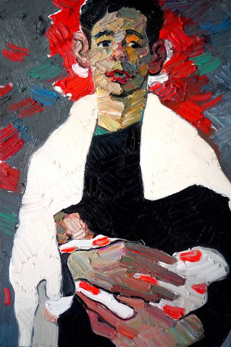 In this expressive oil painting, I sought to capture the raw emotions and complex humanity that dwell within us. Using bold strokes and vivid contrasts, the figure emerges with an intensity that is both disarming and mesmerizing. The vivid reds and deep shadows not only highlight the physical form b...