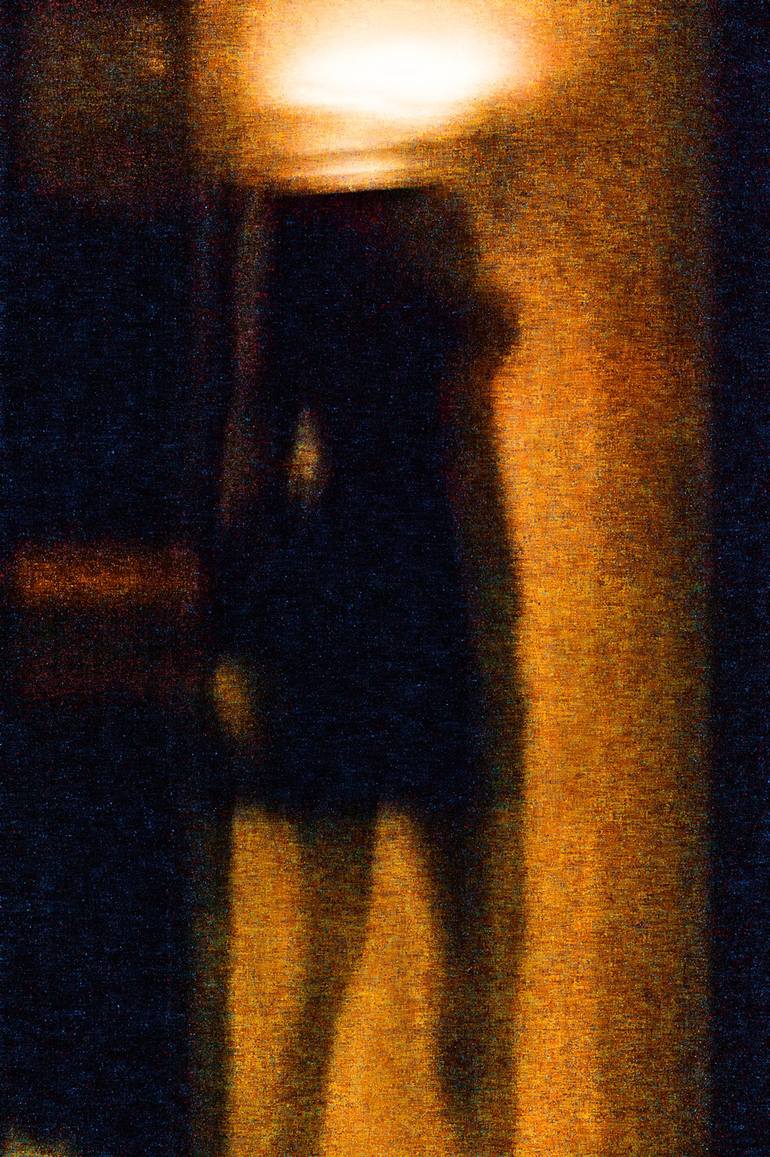 Pigment on canvas with varnish and acrylic I use the artifact of digital noise to render the photograph into a contemporary visual trope. Digital noise is the detritus of digital imaging widely considered worthless and ugly. I transform it into a texture of unexpected beauty, which denies the certa...