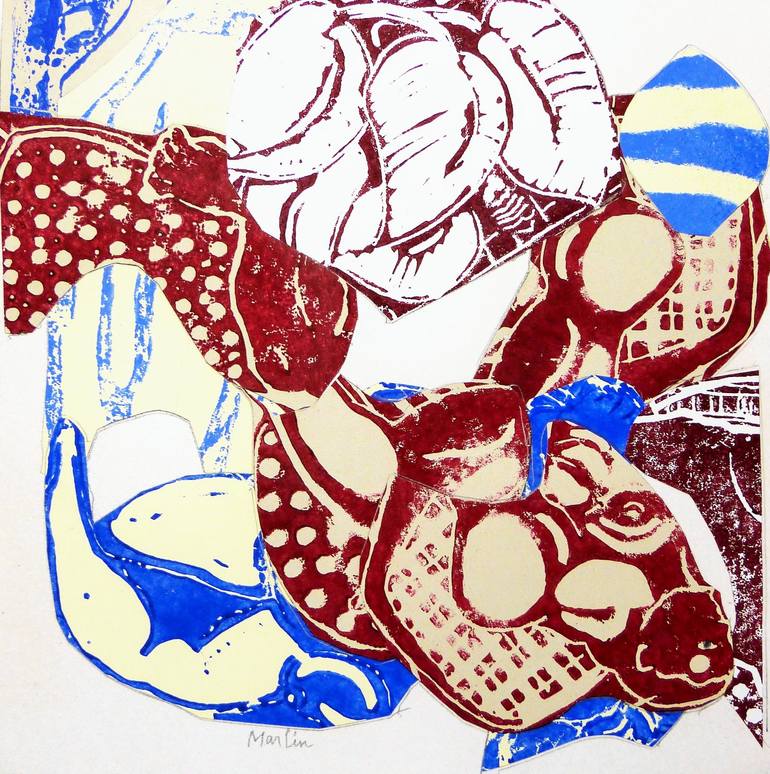 On n'est pas obligé d'être attiré par ces superpositions de rondeurs, il n'en est pas moins vrai qu'elles interpellent ! Ces monstres difformes d'un réalisme saisissant sont posés à l'huile ou à l'acrylique sur toile. Mais ce n'est pas tout, loin de là. L'artiste joue les superpositions, bien visibles quand on se place sur le côté de la toile et que les reflets de lumière accusent les épaisseurs. Utilisant la technique du collage qui se devait, à l'origine, de stimuler l'invention créatrice, Marlin emploie tout ce qui lui tombe sous la main - des bouts de tissus, des fragments de papier calque ou de papier-patron couture - qu'il découpe, compose, mélange, réhausse de couleurs, voire de morceaux de radiographies, fémur, colonne vertébrale, savamment placés à certains endroits pour créer des ombres. Le travail de Marlin, très répétitif, ne manque pas d'attirer la curiosité comme au cirque on s'amuse au spectacle du nain à bosses multiples faisant sur la piste ses pirouettes. On songe aussi aux poupées de celluloïd et de chiffon de notre enfance si souples qu'on pouvait en contorsionner sans risque bras et jambes et même zieuter, un peu sadiquement, les sombres points d'ancrage où se fixaient les membres. Tous ces personnages "impitoyables et graves" constituent un univers peu banal, parfois effrayant nuancé toutefois par une palette chromatique légère et raffinée adoucissant le propos. Pascal Marlin nous semble être un tendre gonflant ses fantasmes pour les mieux apprivoiser ! La lettre mensuelle Les chroniques de Colette Bertot / Février 2005 Pascal Marlin. Bizarre... Vous avez dit "bizarre"? A la Contrast Gallery de Bruxelles