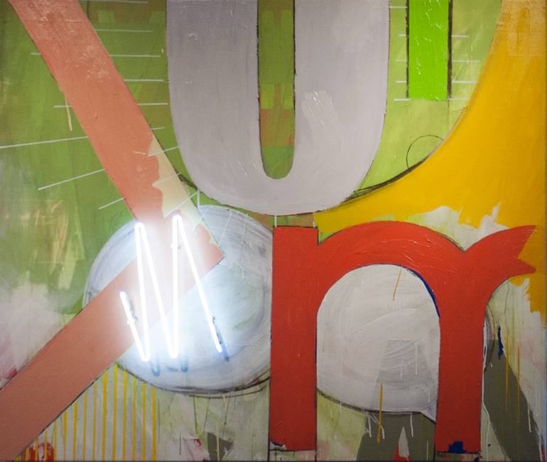I´m an Brasilian based artist. In this portfolio I present a clipping of paintings and installations developed in 2018 and 19. These works reflect research on the interpretation and emptying of symbols and characteristics of a city taken from the urban context and worked in image. I bring as a source of research the ways of building a city, the modes of communication used in a city and the urban landscape. I interpret materials, repetitions, lights, prints, graphics, communication elements and identification plates, transposing the excesses of the city into image. The urban landscape signs are removed from context and has their sense emptied: in the paintings a letter does not fulfill the function of forming words, neon lights do not advertise trades, traffic plates do not indicate localities, all symbols chosen point for the void of his urban excess Empty the landscape by desinging its characteristics to the smallest point of recognition: A circumference and a horizontal line are sufficient to identify it. Thus, I compose the paintings with letters, clouds, circles, landscapes, mountains, prints, lights. An unlikely contact between urban communication and utopian landscape allow me to talk about the city and landscape by emptying its signs. Thus, through the paintings and the installations, I propose: 1- Empty the meaning of communication and landscape by the disuse of letters and not definition of place/landscape; 2- Affirm, repeat, supersede and nullify the sign. 3- Organize urban findings and disorganize visual compositions – conflict the expansive gesture with the synthesis of the landscape idea; 4- Expand the body of wall paint into space.