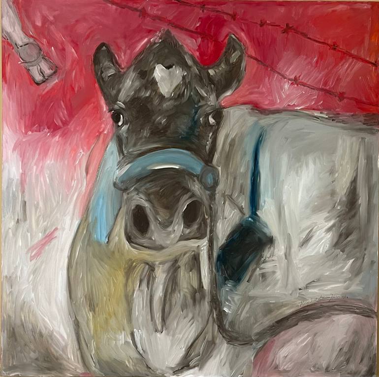 This painting is from a farm animal series where I captured the personalities of animals. This was an animated cow who lived in Bath County, Virginia.