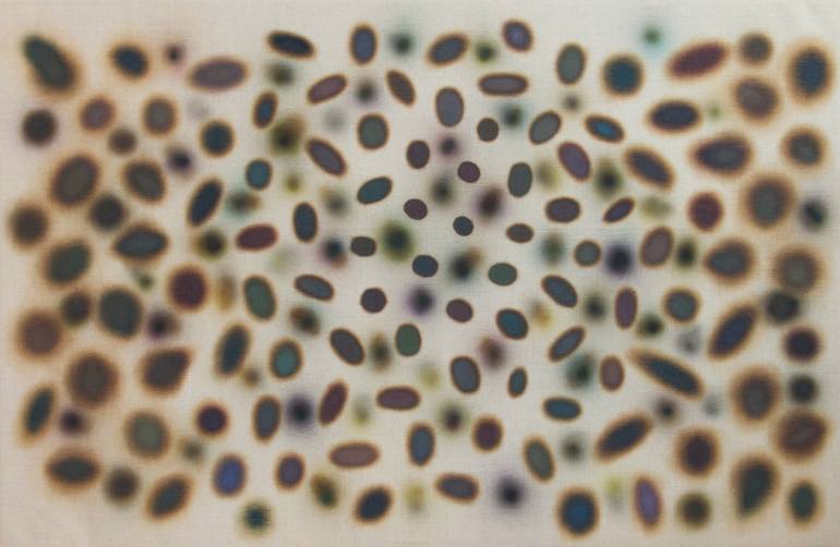 Willem van der Weide (1980) lives and works in Amsterdam, the Netherlands. From 1997 he studied violin at the Rotterdam conservatory, where he graduated in 2005. In the years after he started with painting, as an autodidact. In 2016 he began working on the Dot series. Being trained as a musician, I think of my series of abstract paintings as music. Music is a collection of notes put together in a certain order, transferred into space through for example, an orchestra. It is only when the notes are arranged in the right order the music will sound magical. The dots I paint are like music notes whereas the linen is functioning as the space. The composition of these dots are crucial for the painting to make it work. For me the fun part is to play with the instrumentation by giving each dot a slightly different colour, texture and shape. What I am aiming at is that when someone is looking at the painting the dots will slowly unfold itself into a story.
