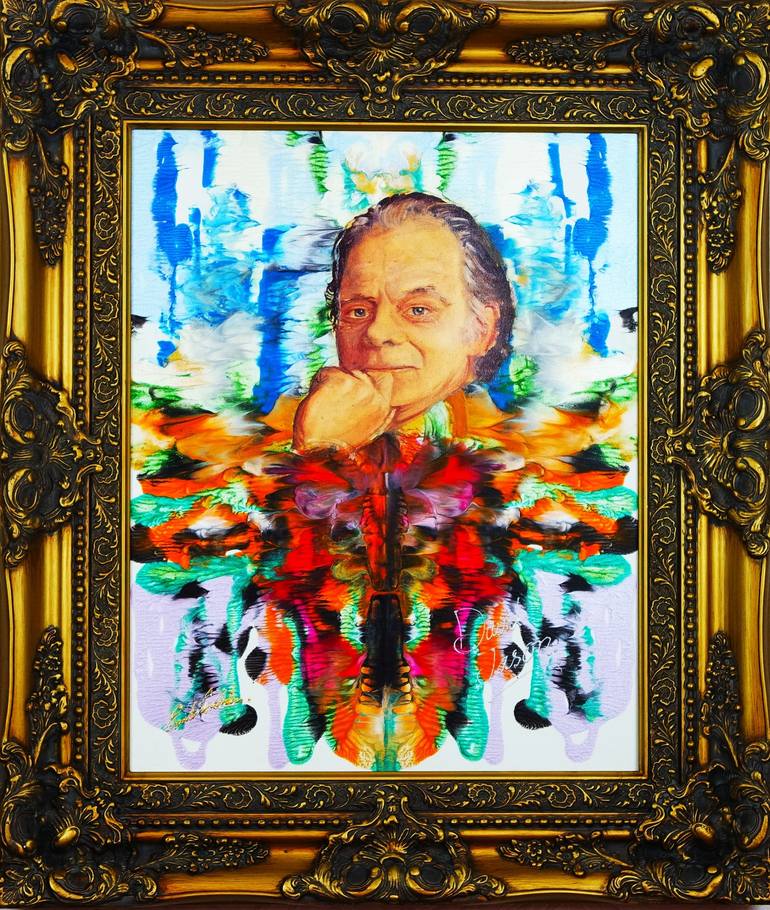 This striking portrait painting, "was $999 Abstract Portrait David 871," is a unique piece that blends classic portraiture with abstract elements, resulting in a humorous and iconic artwork. The artist employed both oil and acrylic paints on stretched canvas, creating a rich texture and visual depth...