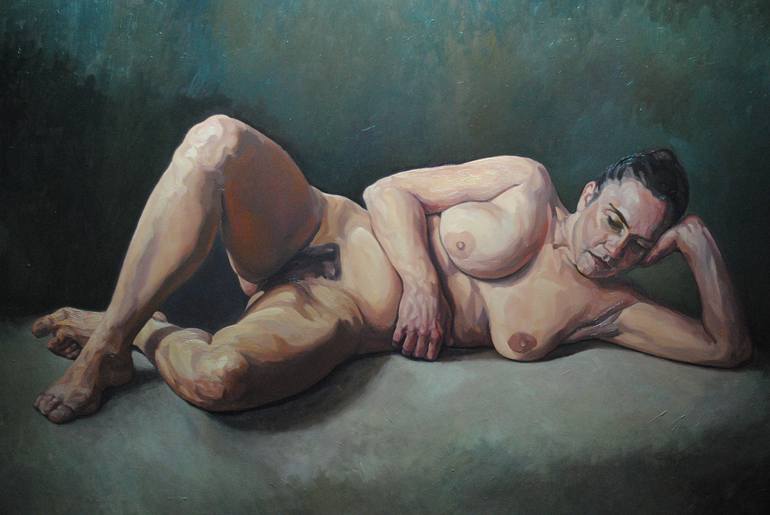 L'artista ha cercato di rappresentare con questo nudo realistico la "realtà" fisica del corpo umano, modellato con una luce radente che ne rivela la sua sostanza di anima, mente e corpo. Il mistero della figura umana è stato qui rappresentato attraverso questa grande immagine del corpo femminile co...