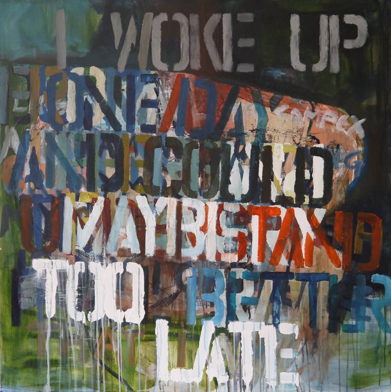 b 1971 UK Self taught artist working with many mediums but liking paint the best. Painting is just a language that I am more comfortable with, it has an honesty, it is what it is. My work is very unprocessed, direct, I don't see as I paint , just look at it sometime later, then start again or leave it alone until another time. I work with layers, building them up and scraping back, finding stuff I had forgotten about, the painting starts to get interesting, to develop its own past. The word paintings write themselves with no restraint, if I'm not sure I keep writing over, but ultimately the words, however buried, have been said.