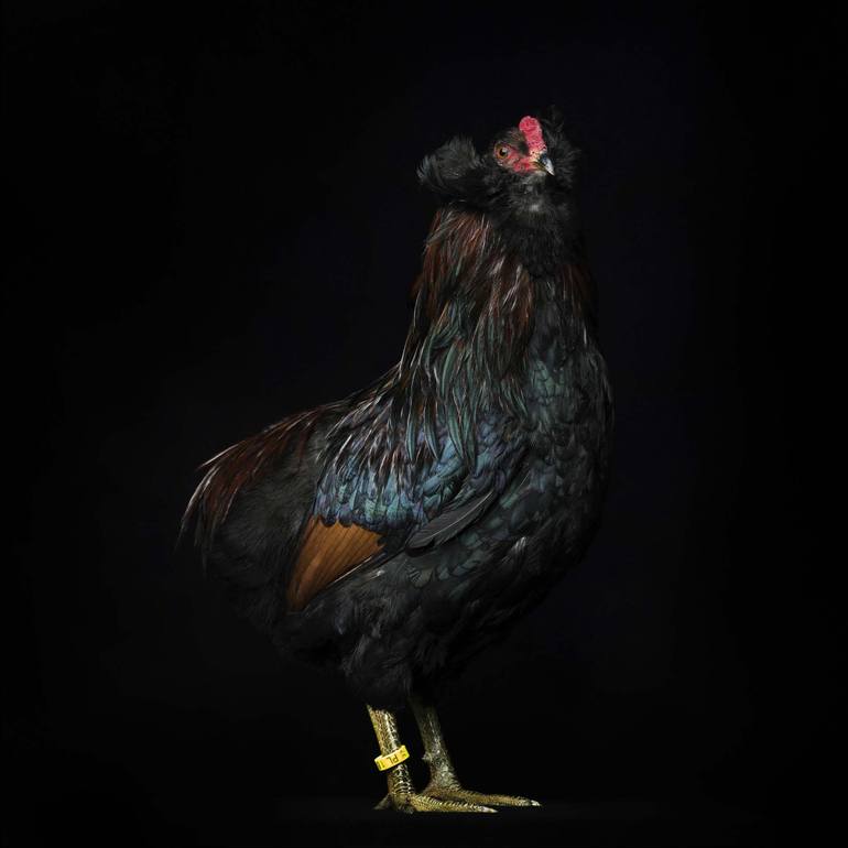 Format 80x80 cm, archival pigment print on CansonPlatine Fibre Rag 310, Gallus means rooster, but it sounds more sophisticated and so are the chickens in the lens of Cyron. Beautiful with intense colors of feathers majestically posing for pictures. Black background and one source of light, which is...