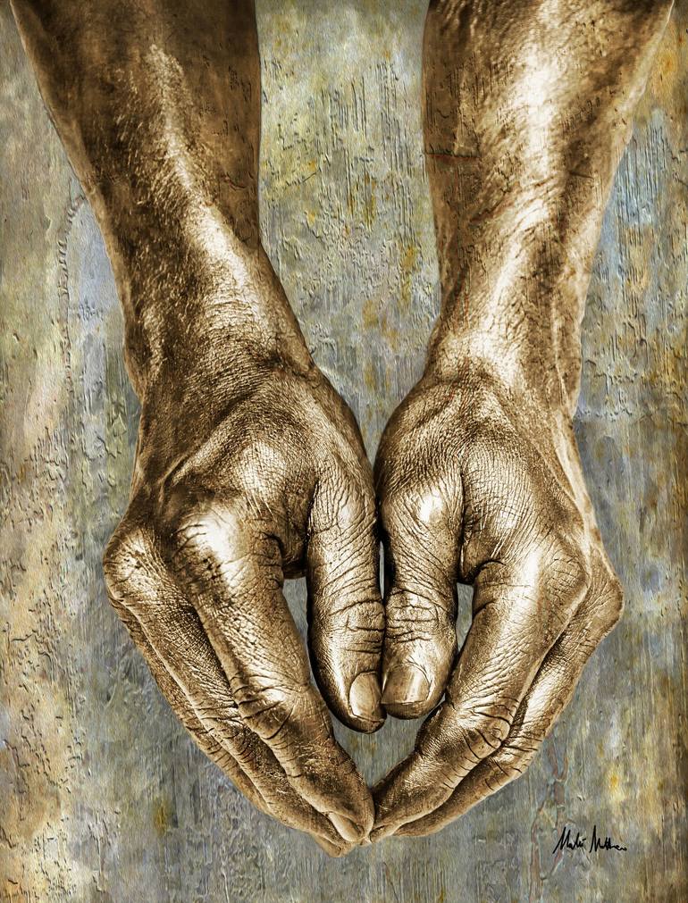 le mani pitturate di oro rappresentano l'abbondanza e la prosperita'