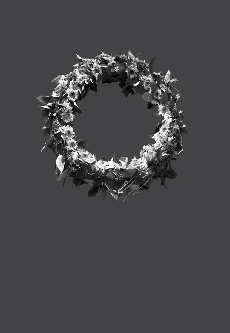 Orit Ishay 90% Gray, 2014 Archival inkjet print 60x40 cm. numbered and signed Edition: 5 +1AP Ishay sampled 18% of gray color, as the ground base for the production of Twenty One Hues of Gray (2014), appearing in a separate photograph which includes twenty one small wreaths, perhaps mourning wreath...