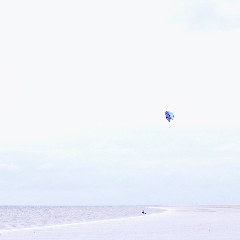 A Day At The Beach Emptiness, without limit. Fragile blue water and infinite sky. A strong sail rides a high wind. A fresh, windy day in May. There were few people on the beach and only three kite surfers at sea… 'A Day At The Beach' is an artwork in my collection 'Infinite Sea'. I made this phot...