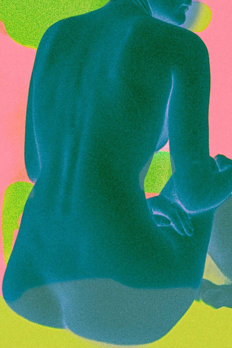 This image captures the raw, unspoken dialogue between the body and its surroundings—a reflection of emotional depth without the need for words. The figure’s back is exposed, a posture that suggests vulnerability, introspection, and the weight of sensory perception. The interplay of color is not jus...
