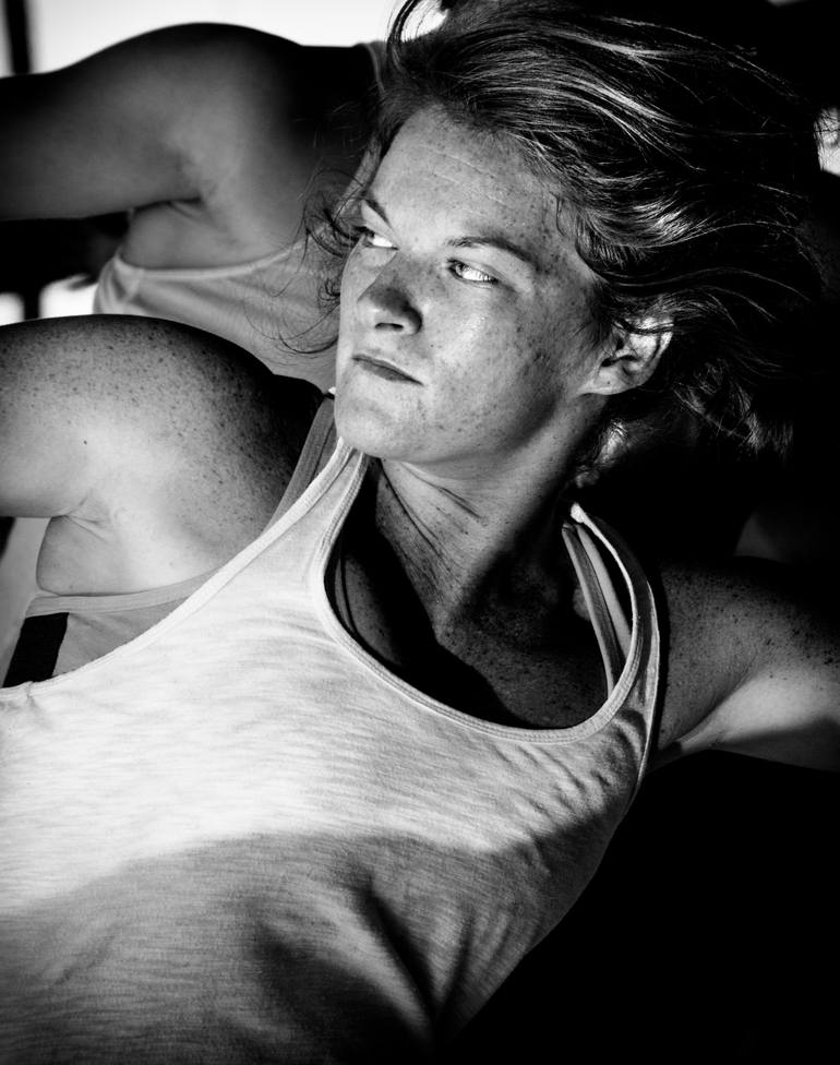 A Yogini at a Yoga retreat. Captured this during the Yoga Workout. The eyes, The Hair & her expression make a striking matter in this shot.