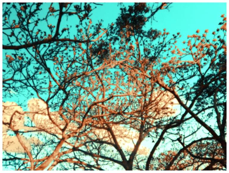 This is a photograph of trees on a blue afternoons6This is a photograph of trees on a blue afternoon, where you can see their natural process of changing leaves and blooming again. Branches, flowers, and small leaves in full growth are seen at the end of a sunny day with few clouds. With some light ...
