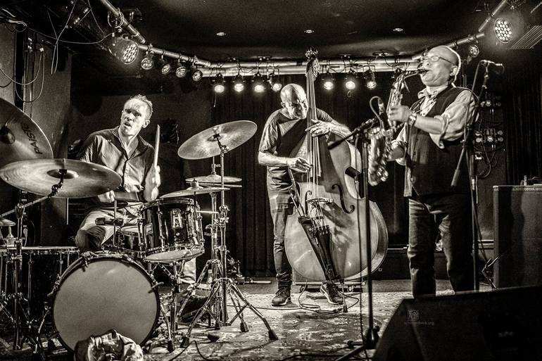 The Band Arashi with Akira Sakata, Johan Berthling, Paal Nilssen-Love catched in a vibrant live photography by Jazz Photographer Frank Schindelbeck