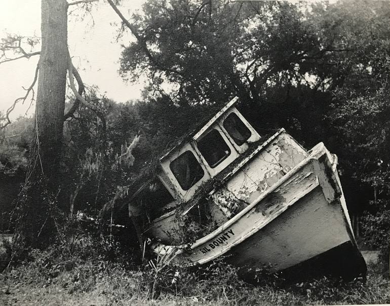 Deep in the swamps of the low country of South Carolina lies the remains of the fishing boat Lil Bounty, lying where the storm dropped her, slowly being reclaimed by nature. Printed on Ilford Multigrade 300 Art paper, Mounted, matted, and framed, ready for display. Artist signature and edition n...