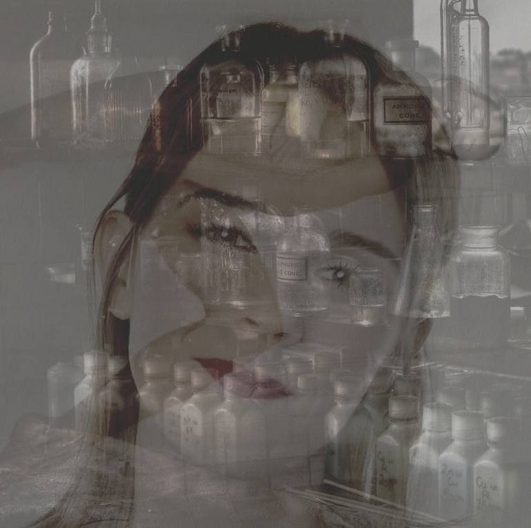 Yurii Yermolenko, "Alchemy of Love", 2019, archival pigment print, 150 x 147 cm. So many dreams that flow Is bottled in different colored bottles Each has unique fragrance You are the perfumer With in-depth concepts of moods Every dream a combination Of special ingredients - hope, anxiety, happine...