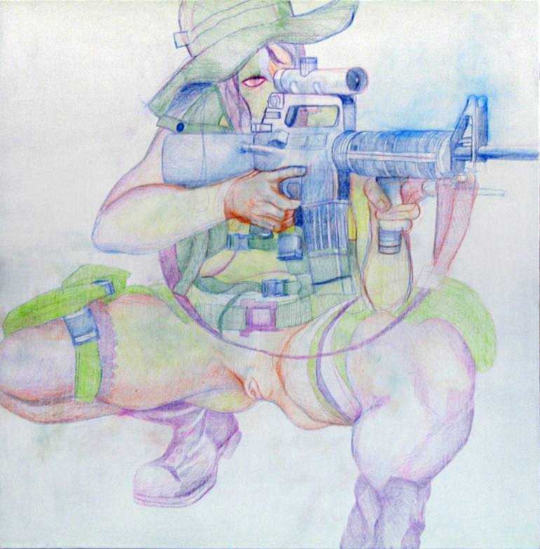 My most recent work has explored themes of juvenilia: images of power and sexuality, glorified violence and objectified women, neither ironic nor naieve, but mindfully gratuitous. Past themes have included self-portraiture and retellings of biblical narratives to account for the presence of dinosaurs.