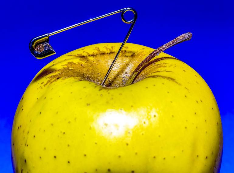 Une pomme et une épingle à nourrice - Pop Art Tirage d'art limité à 30 exemplaires. Numéroté et signé Sur papier HAHNEMÜHLE GERMAN ETCHING 310G - 45 x 60 cm - ( marge de 3 cm pour encadrement ) (autres tailles supports et encadrements possibles, nous contacter)
