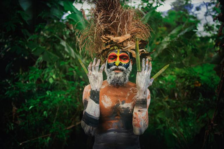 Asaro Mudmen,The "Mudmen" of Papua New Guinea's Asaro tribe, also known as the Holosa, are those who wear a traditional costume centered around masks made of mud. They live nearby the village of Goroka in the Eastern Highlands Province of Papua New Guinea. ➤Dimensions: 60 x 40 cm = 23.62 x 15.75 in...