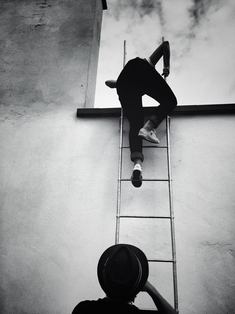 A minimalist street scene framed by bold lines and deep contrast. A moment of movement and observation becomes a quiet study of ascent and human intention. Poland.Katowice
