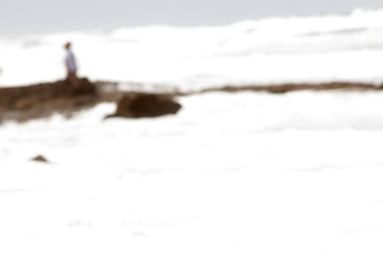 The photograph depicts a woman beholding the wilderness of the raging sea, attracted by the immense strength and power of Nature.