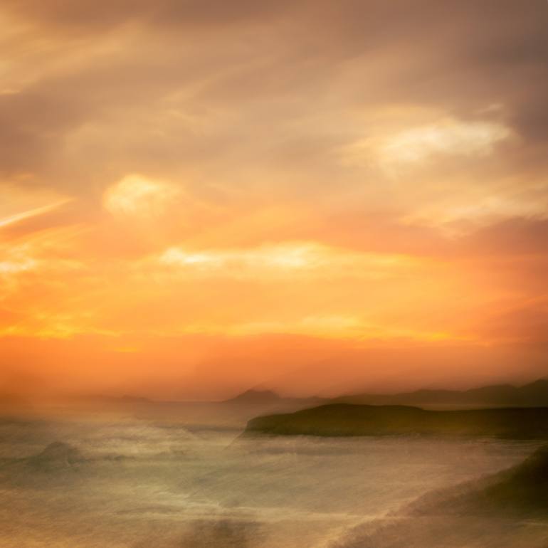 Working from the Isle of Skye and the remote edges of the Hebrides, Lynne’s practice is rooted in landscapes shaped by time, weather, and tide. Her work draws from long traditions of looking—of returning again and again to the same horizons until place begins to loosen into memory, movement, and light. Through fine art photography and atmospheric abstract works, she explores the meeting point between the seen and the felt. Waves dissolve into gesture, skies soften into breath, and colour becomes a quiet echo of the natural world rather than a description of it. While her work is anchored in specific geographies, it resists fixed location, inviting the viewer into a space that is contemplative, spacious, and timeless. Lynne is particularly drawn to scale, creating large-format works intended to slow the eye and hold a room. Her images offer a refuge from noise and haste—a visual pause that speaks to the enduring human need for stillness, beauty, and connection to the elemental. Her work is collected internationally and is suited to both private and architectural settings, where atmosphere and calm are as important as form.