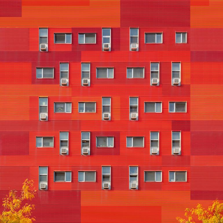 An apartment building in Brooklyn, New York. The rhythm of the windows and the lively autumn tones stood out for me, also being enhanced by the trees with yellow leafs. This is a ready to hang artwork. It is a photographic print on high quality paper behind plexiglass (Diasec) in museum quality fin...