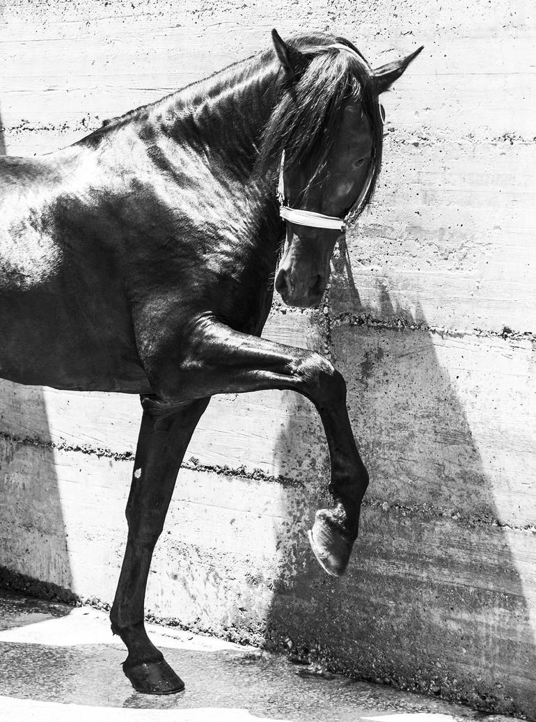 A stunning looking black Spanish horse lifts his front leg up. I love to photograph these magnificent animals and that is why I frequently visit Spain to seek them out. ' C-TYPE ' prints offer the most outstanding professional, silver based, archival print and the ultimate photographic print qualit...