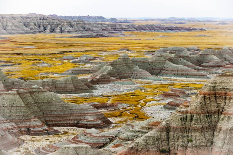 Elevate view of the spectacular landscape in the Badlands National Park in North Dakota, USA.