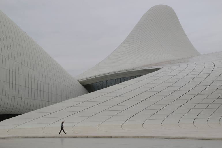 Shot in 2016 in Baku, capital city of Azerbaijan, during an intense five days shooting section with my Canon EOS 70D and Sony alpha 7II. In the background you can see the Heydar Aliyev Cultural Center masterpiece of the genius anglo-iranian architect Zaha Hadid (1950-2016). Printed on Hahnehmuhle Ph...