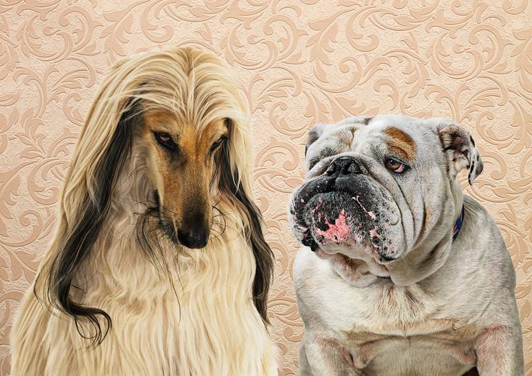 Exploring the idea of beauty and the beast with an Afghan Hound and a Bulldog.