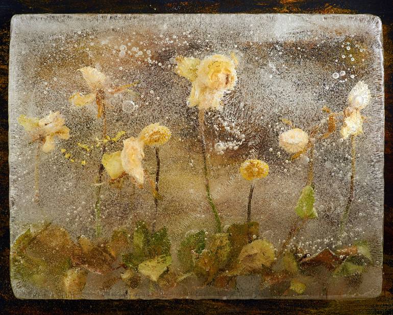 These flowers were a gift from my wife for my birthday, and I froze them into this block of ice after drying. The petals might be meek, but they dance appearantly vigorously in the sparkling space of the block of ice. The roses are joined by other flowers as well, and I almost believe I can hear mus...