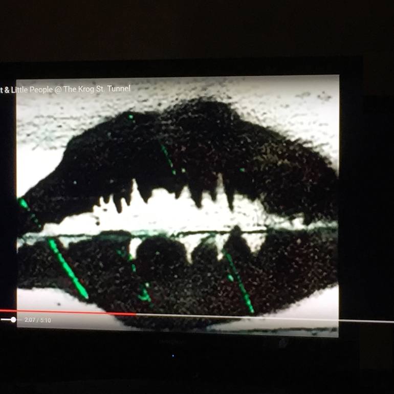 Black Lips On TV, digital image signed by artist S. Peace. Based on a graffiti image from 2008