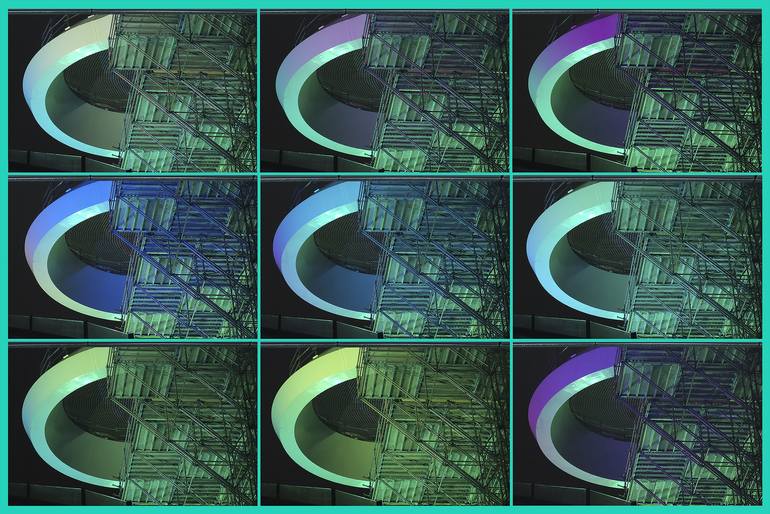 This is a photogoraphic impression of the construction of what is called the "Bollendak" (the Sphereroof), the cover of the Railwaystation square in Utrecht, the Netherlands. The round shapes are given different colors to make a colorfull work of photographic art. The combination of the smooth shape...