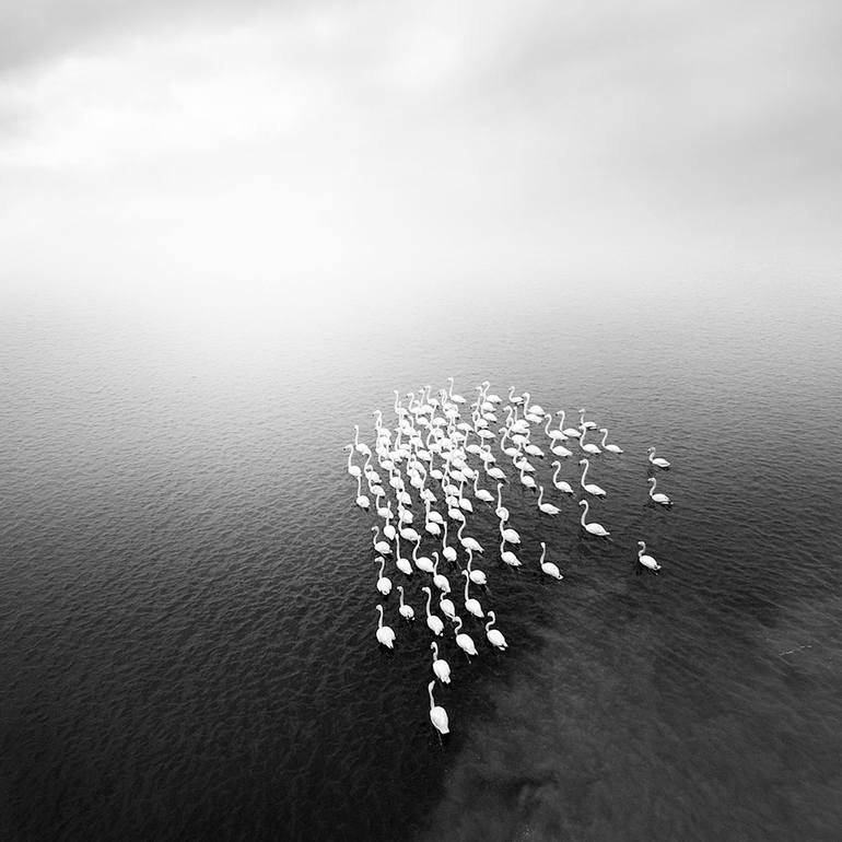 Small group of flamingos in the estuary Printed on Fine Art paper, Hahnemühle Baryta® 325 g/m², image will add a few cm of white margin for easier framing
