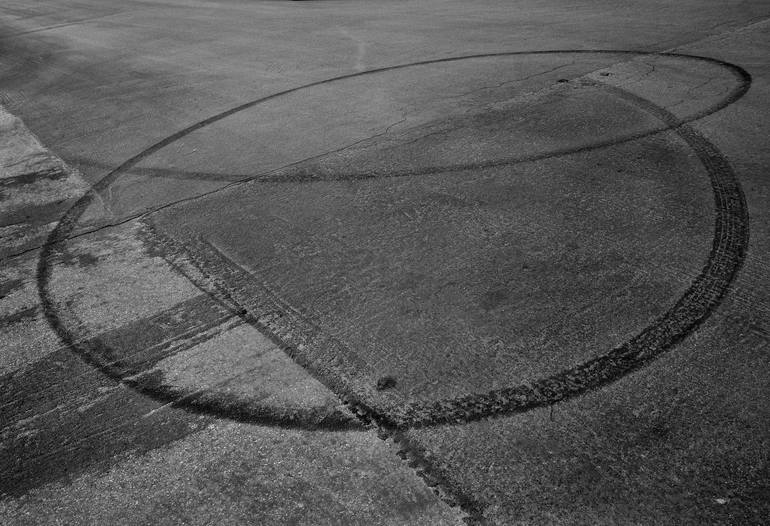 Kicks Krazy Young Hellions! (dogs and cats living together) Patterns in the street created by racing engines, spinning tires. The neighbors complain, but oh the visuals left behind! Louella Ave in Venice, California. I once got a moving violation ticket near here for running a stop sign. On my ...