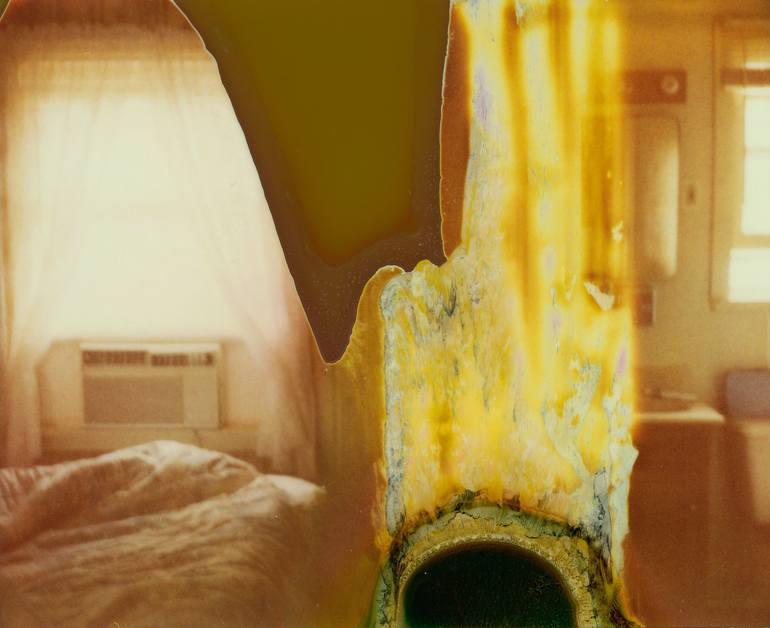 Burning Motel Memories (Strange Love) - 2005 - 40x50cm, Edition of 10. digital C-Print, based on a Polaroid. Signature label and certificate, artist Inventory No. 9926. Not mounted. “I never remember the details of a Stefanie Schneider image, just the whole. She treads a third path between ...