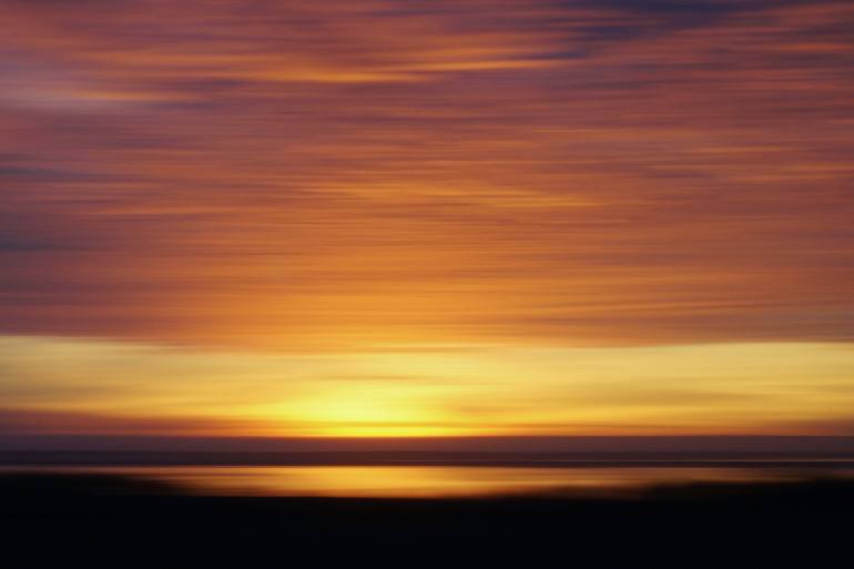 Burning Sunset (1) In a burning sunset, the last breath of the day welcomes the night Sunset over the North Sea, seen from the hamlet in North Jutland, Denmark, where I live. ‘Burning Sunset (1)’ is an artwork in my collection 'Evening Falls‘. Limited Edition prints are available in any size yo...