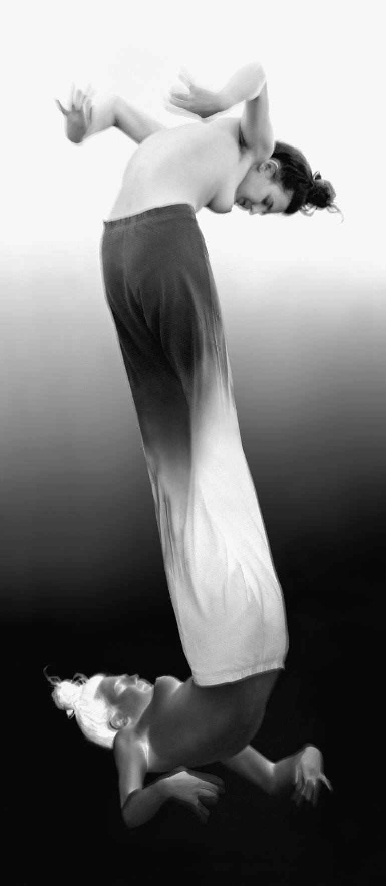 Captured Angel, 2000 - Limited Edition: 25 + 3AP 150 x 65,4 cm Large Size Edition Floater Frame - Profile 15mm - Walnut Wood external dimensions: 154,4 x 69,8 cm Paper: Kodak Pro Endura, glossy Mounting: Original Photo Print under Acrylic Glass 2mm Matte The interpolated figures affirm one anothe...
