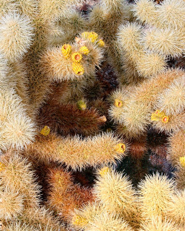 Yellow-flowered cholla cacti located in Joshua Tree National State Park, California captured by photographer William Dey. Image is printed on crisp white matte Picture Rag museum-quality paper and measures 16"W X 20"H with additional white borders for a total overall paper measurement of 18" X 22". ...