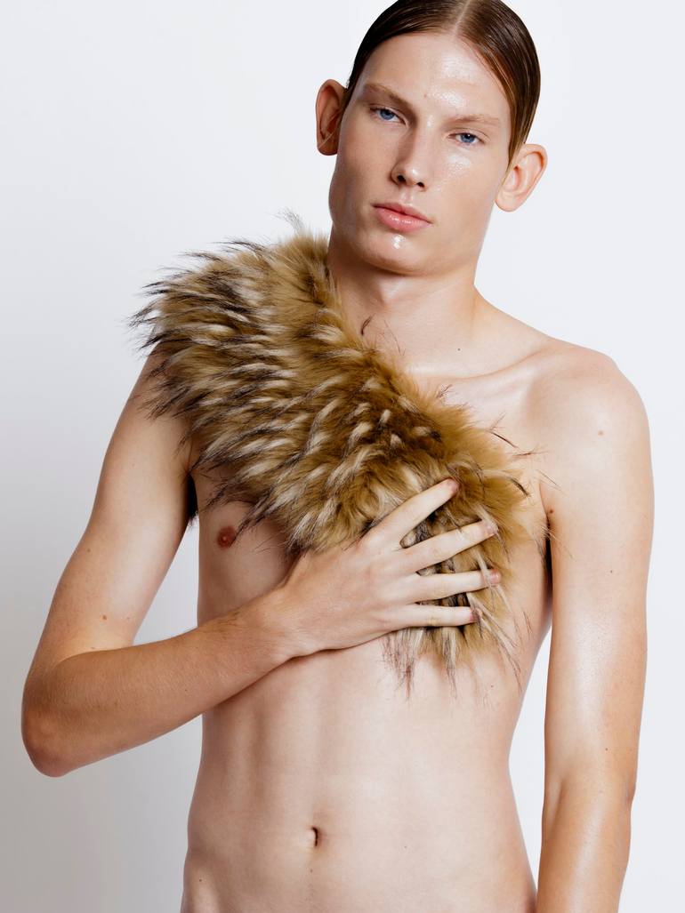 Fashion editorial for Fuuucking Young Magazine. Contrasting colors, dress up dress down. Naked but warm. Other sizes and digital downloads by request. Please contact Saatchi Art support.