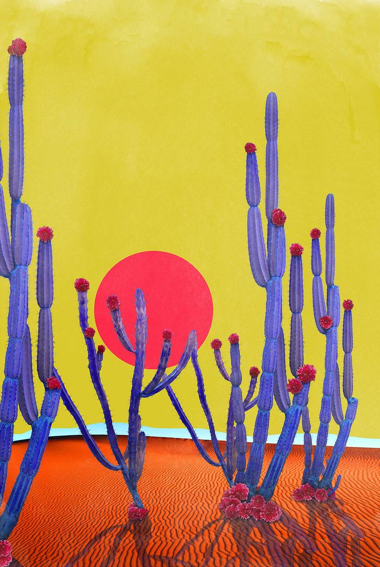A bold colourful celebration of desert bloom. My flowers and cacti photographs, taken on location from the desert dunes of the Sahara to the shaded gardens of Rome and the Botanical Gardens of Oslo. A sunset pop art collage inspired by mid century aesthetics and imagined created landscapes, recallin...
